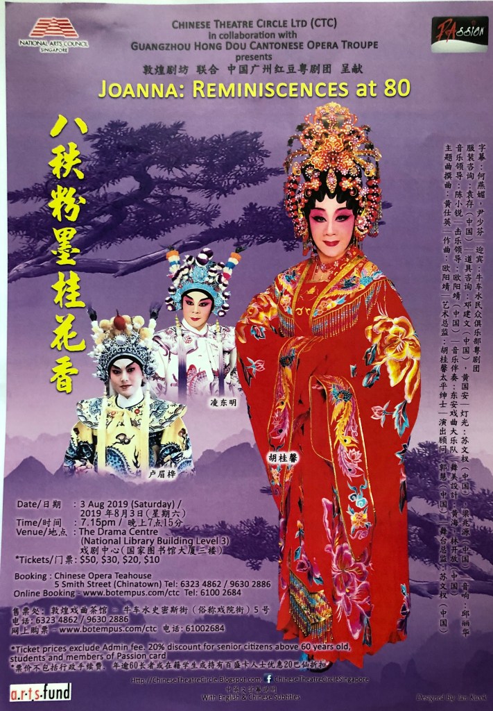 A special celebratory show at the Drama Centre, Singapore on the occasion of Joanna Wong’s 80th birthday, featuring a cast of 70 including students past and present, guest artists and the Guangzhou Hong Dou Cantonese Opera troupe. Co-directed by Christopher Choo and Leong Kum Fai, who were also her students. Expect to see excerpts from Joanna’s signature operas, including Madam White Snake (her first leading role), The Patriotic Princess, Inauguration of the Six States’ Prime Minister, Farewell to a Warrior, A Costly Impulse, and Intrigues in the Qing Imperial Palace.
